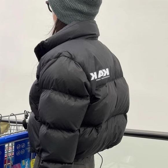 ロゴ ショート丈 エコ ダウンジャケット レディース 韓国 ファッション アウター ボリューム クロップド丈 パデットジャケット