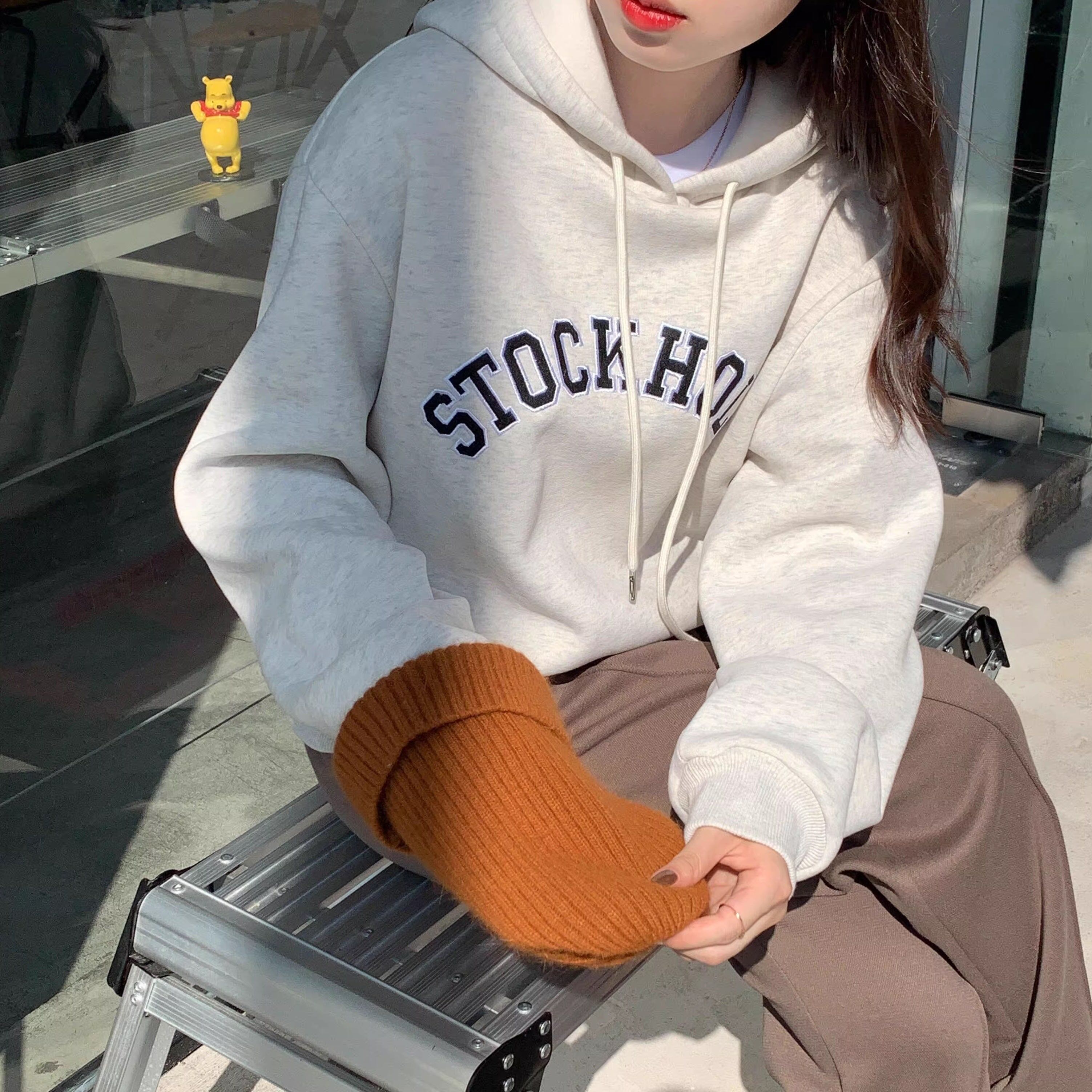 スウェットパーカー 厚手 レディース 韓国 ファッション プルオーバー ロゴスウェット 差し色 裏起毛スウェット