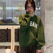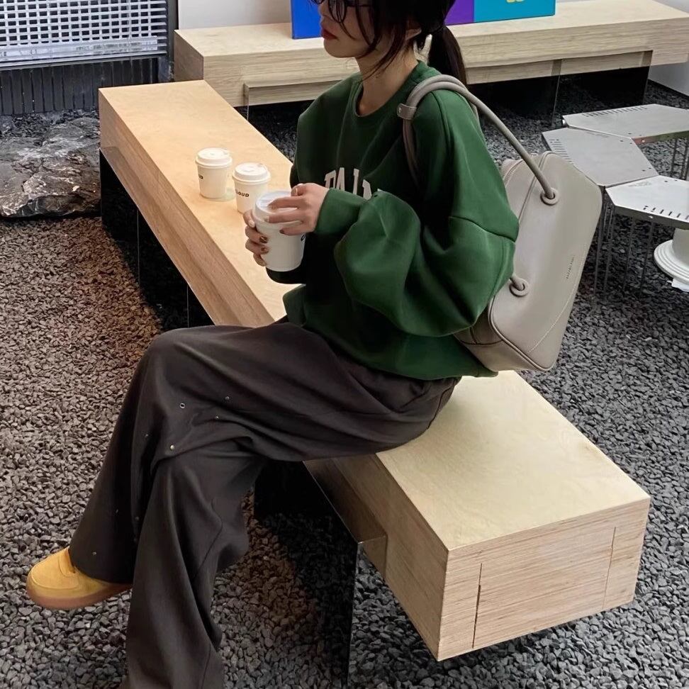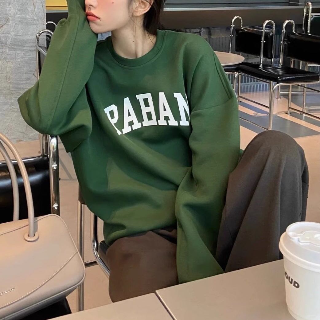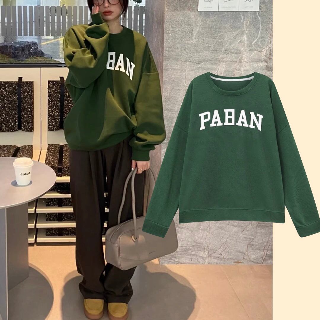 ロゴ トレーナー レディース 韓国 ファッション 秋冬 プルオーバー スウェット シャツ グリーン シンプル アメカジ トップス