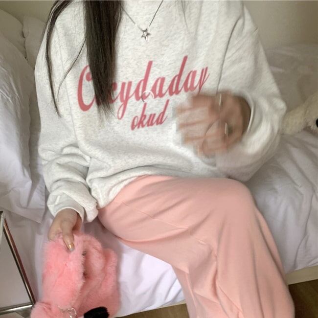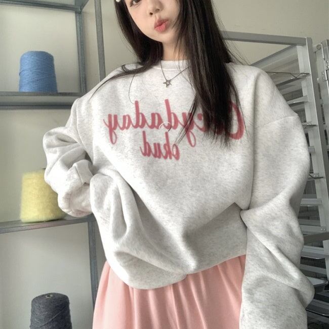 スウェット トレーナー レディース 韓国 ファッション 大きめ ロゴ オーバーサイズ グレー トップス 長袖