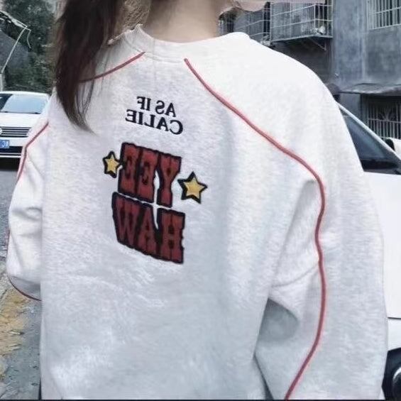 トレーナー スウェット レディース 韓国 ファッション ナンバーロゴ ライン袖 バックロゴプリント 冬トップス 刺繍 ロゴ