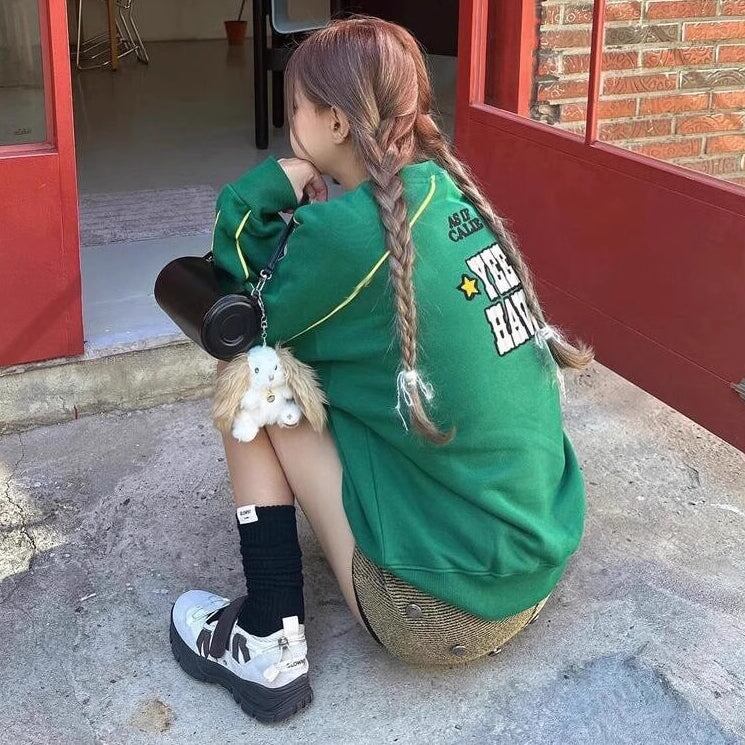 ロゴ トレーナー レディース 韓国 ファッション ナンバー ロゴ ライン オーバーサイズ スウェットシャツ