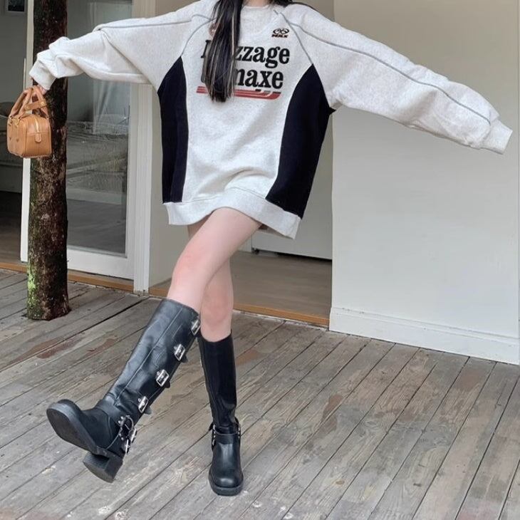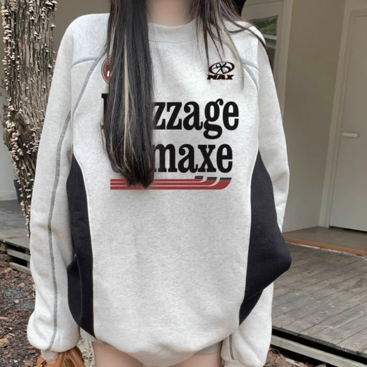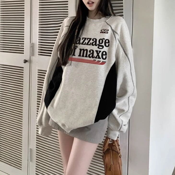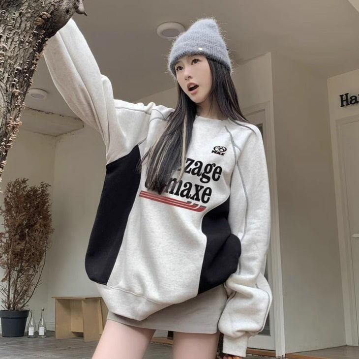 スウェットトレーナー レディース 韓国 ファッション カラーブロック フロントロゴ スウェット メンズライク 男女兼用 カジュアル 冬トップス