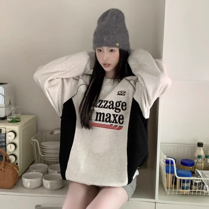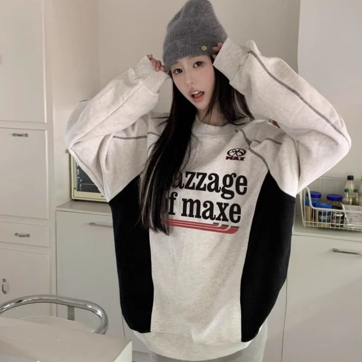 ロゴ トレーナー レディース 韓国 ファッション バイカラー オーバーサイズ スウェット トップス