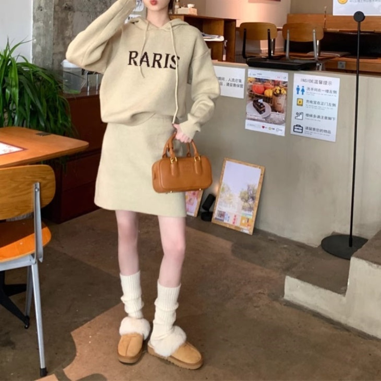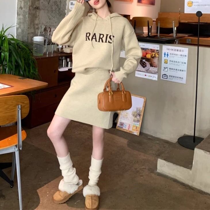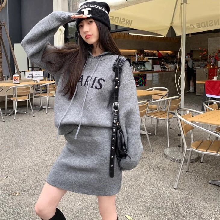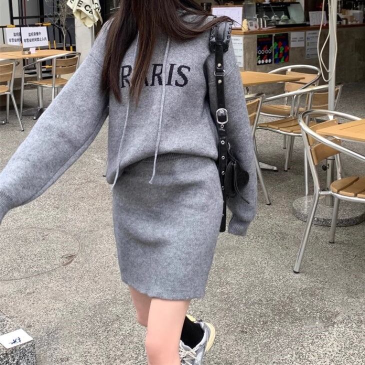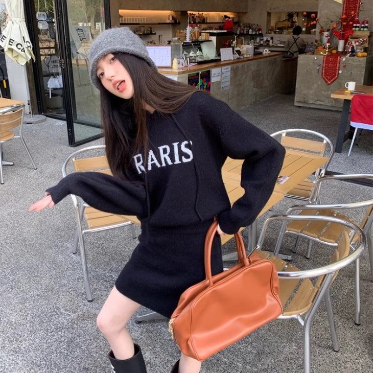 ロゴ ニット セットアップ レディース 韓国 ファッション ニットパーカー ニットミニスカー 上下2点セット