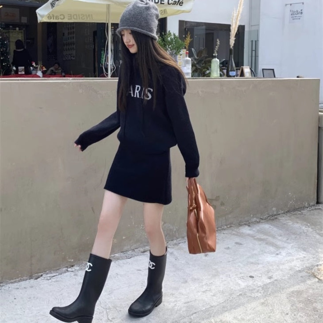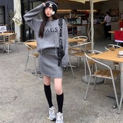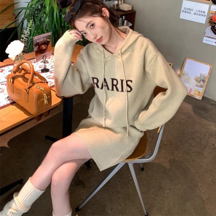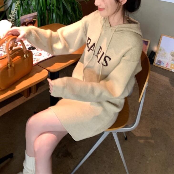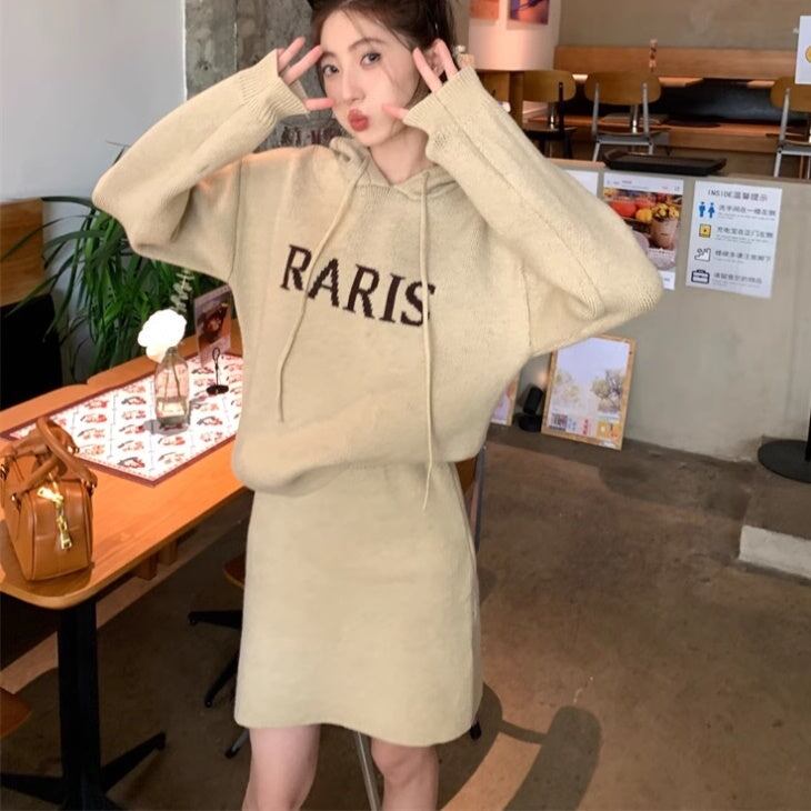 ロゴ ニット セットアップ レディース 韓国 ファッション ニットパーカー ニットミニスカー 上下2点セット