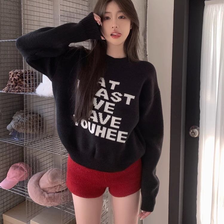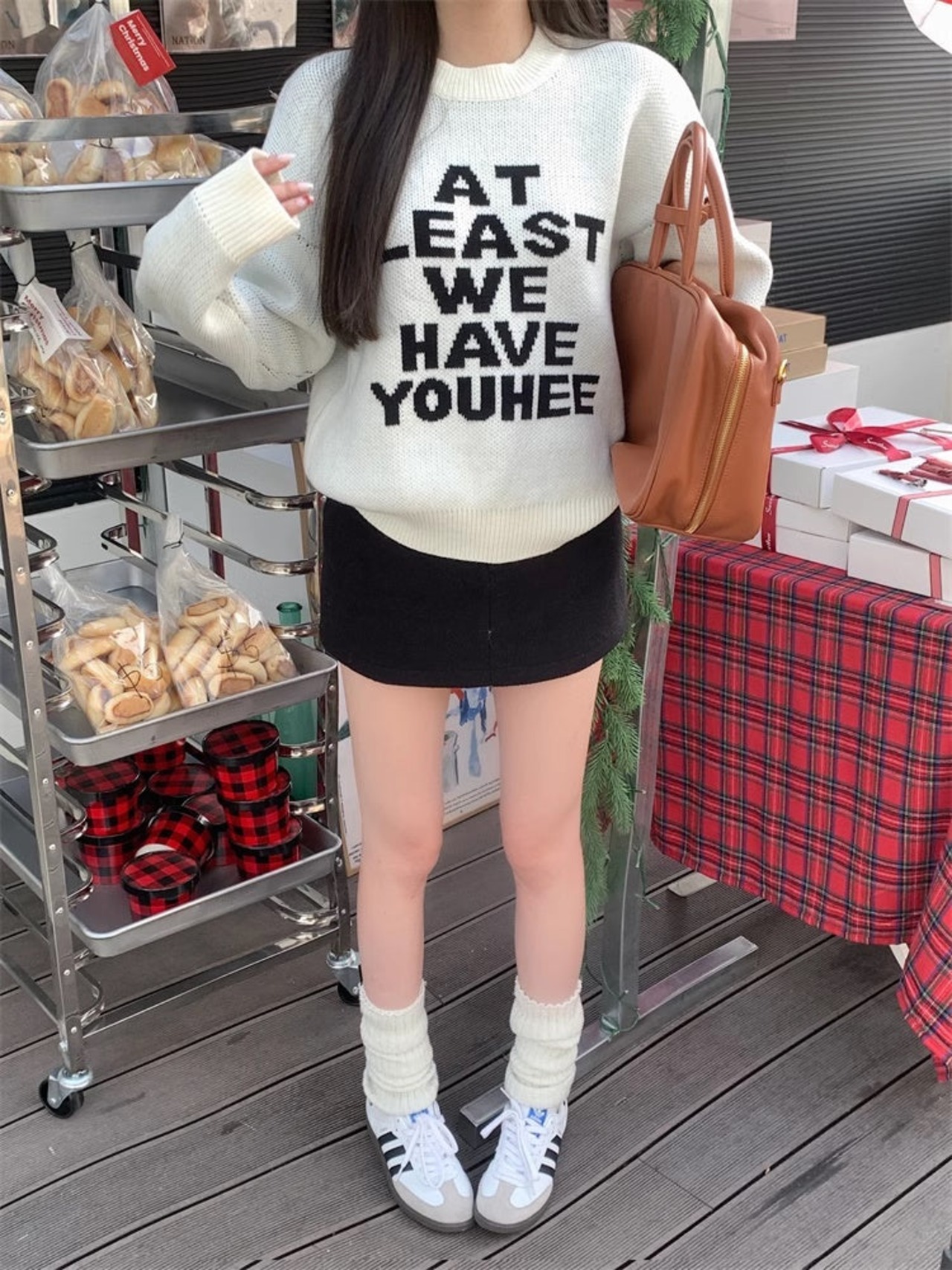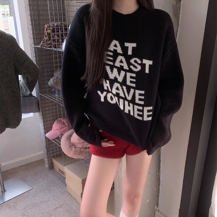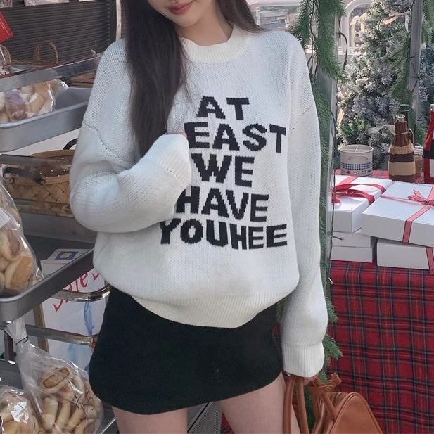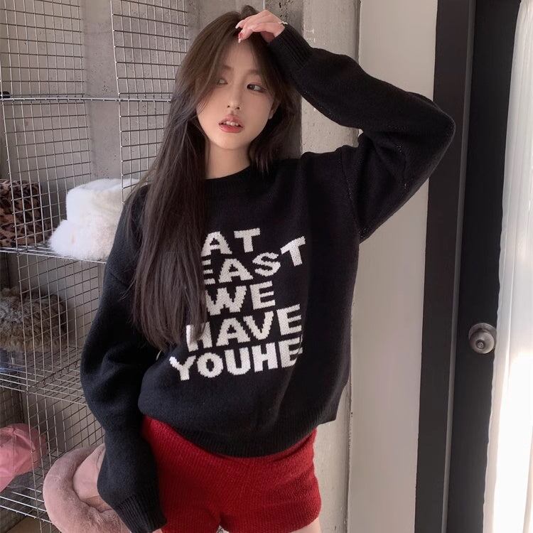 ロゴ ニット レディース 韓国 ファッション 黒 白 モノトーン おしゃれセーター ヘビロテ