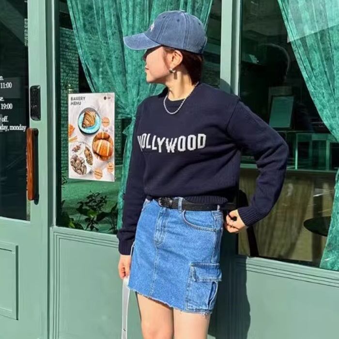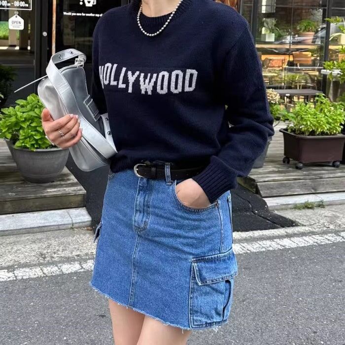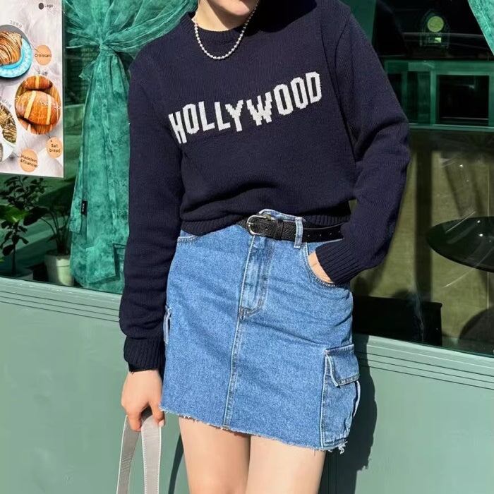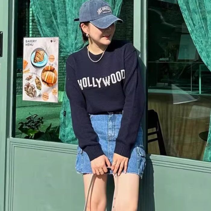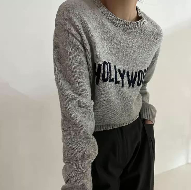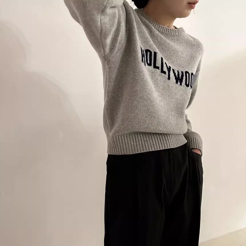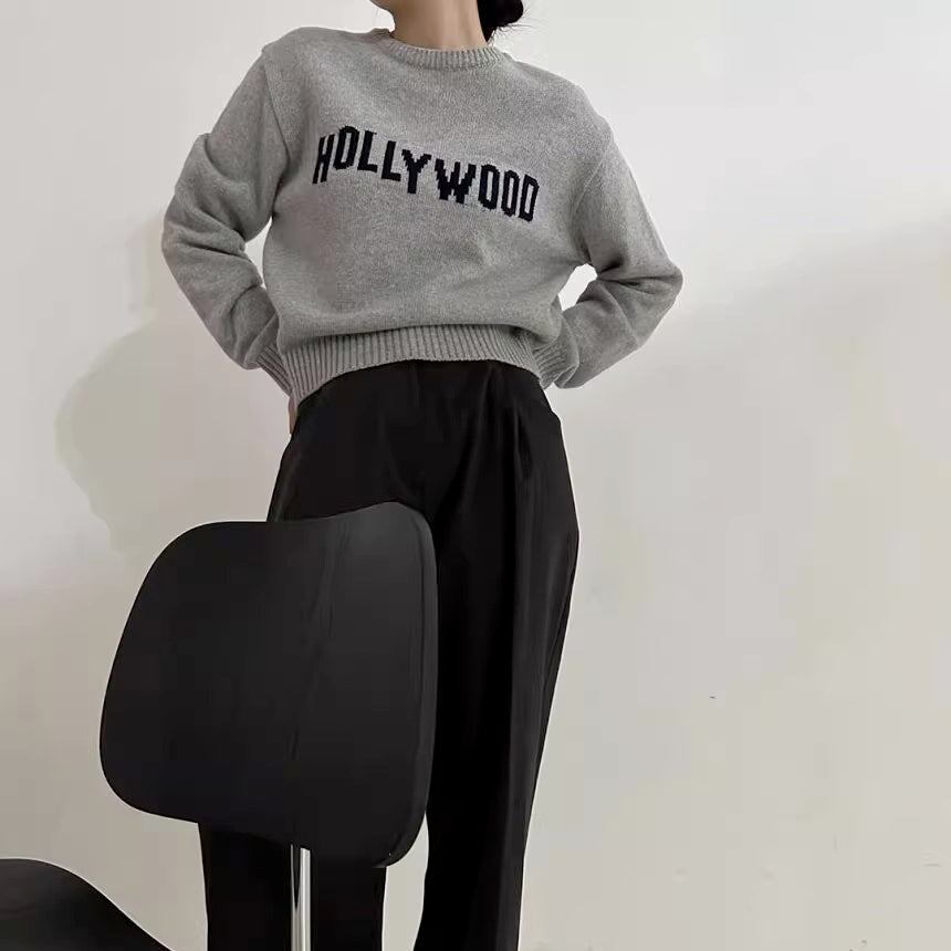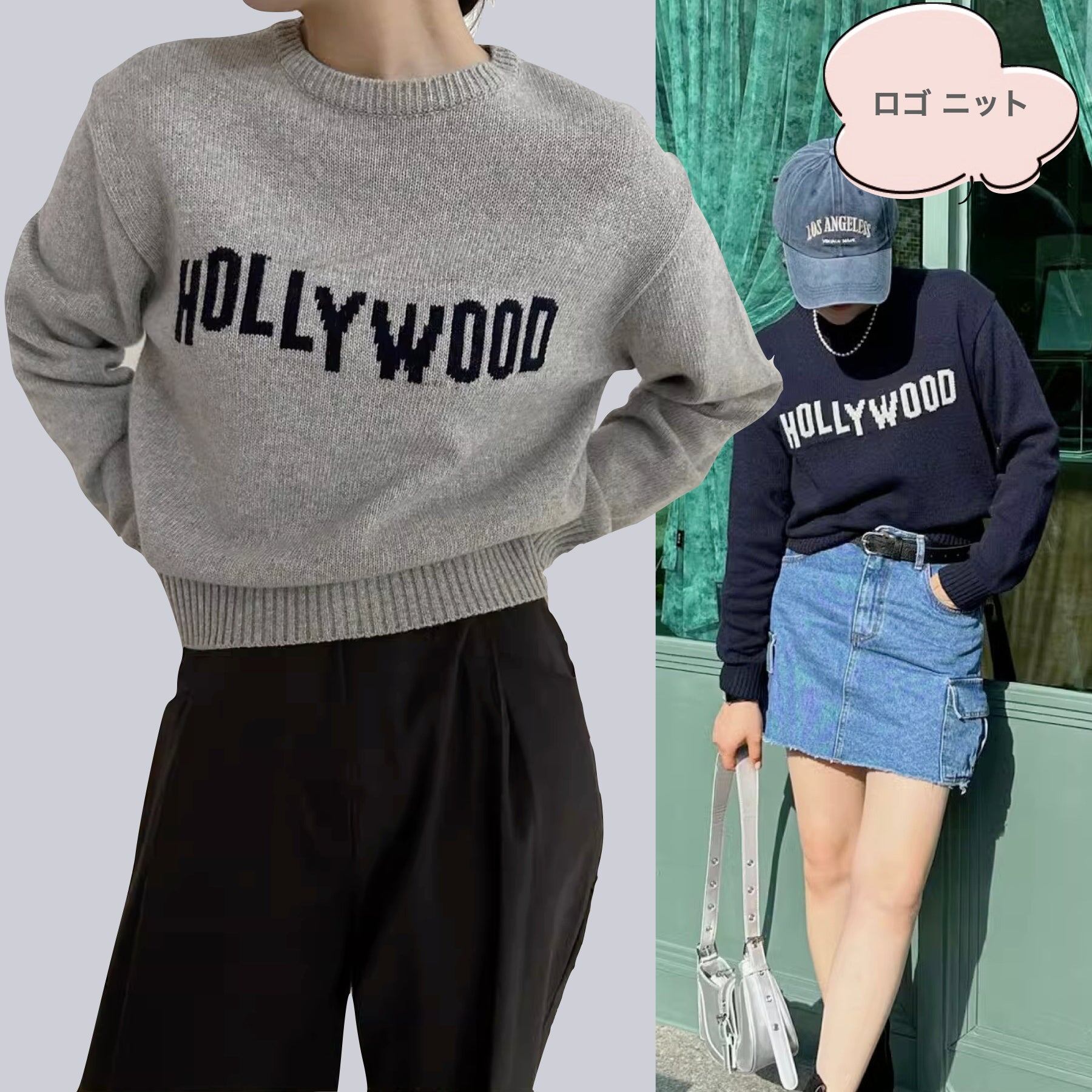 ロゴ ニット レディース 韓国 ファッションクロップド セーター 秋冬 トップス アメカジ ショート丈