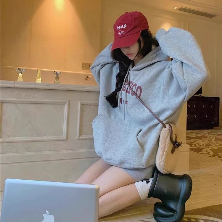 スウェットパーカー レディース 韓国 ファッション プルオーバー カンガルーポケット 大きめロゴ オーバーサイズ ビッグシルエット メンズライク フード 秋冬