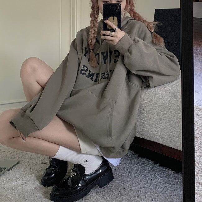 ロゴ パーカー レディース 韓国 ファッション プルオーバー パーカー オーバーサイズ ポケット