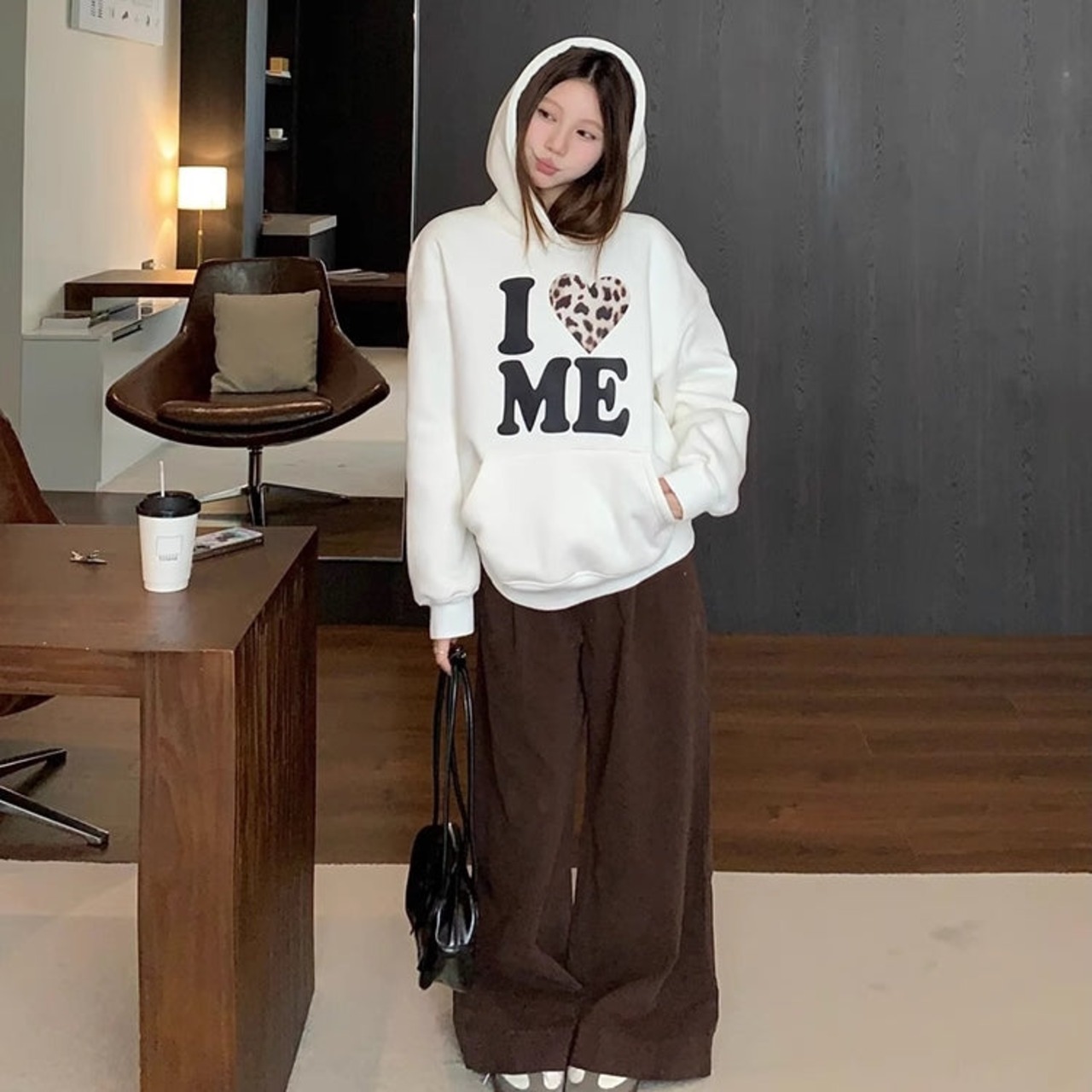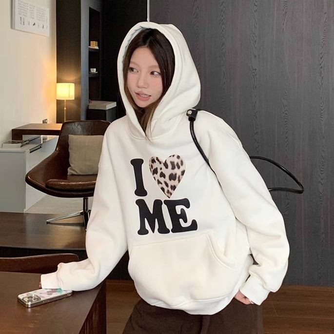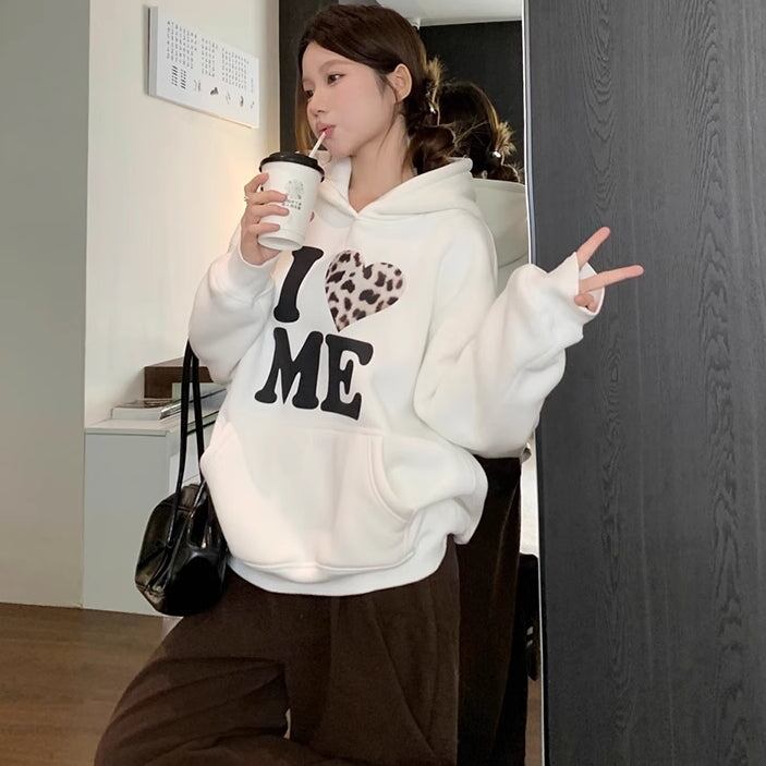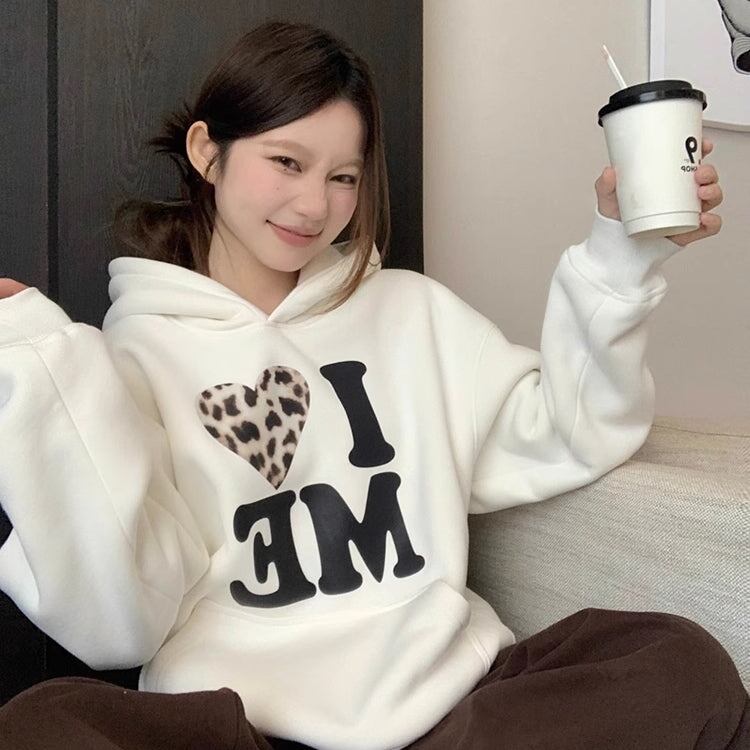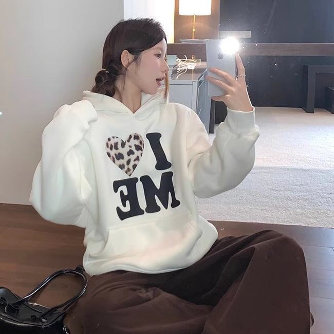 パーカー プルオーバ— レディース 韓国 ファッション 裏起毛 ハート 大きめロゴ 白パーカー 冬スウェット 厚手 レオパード アニマル ヒョウ柄