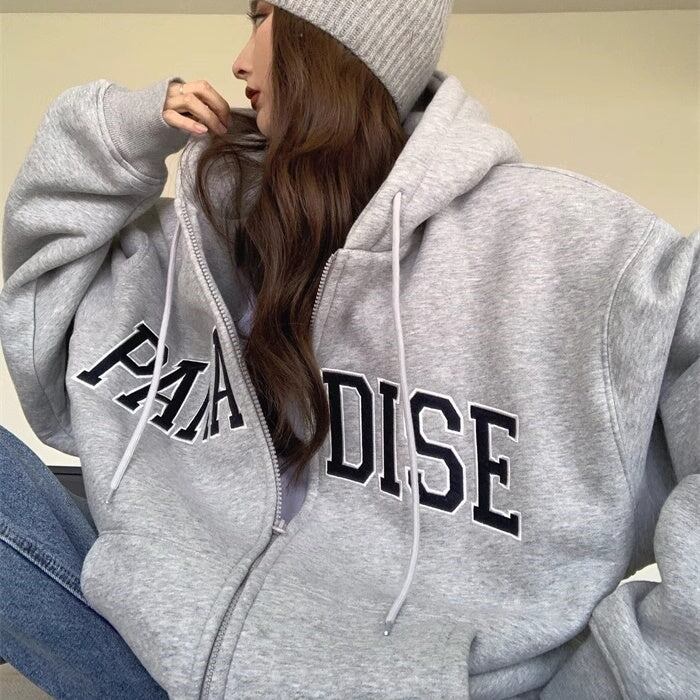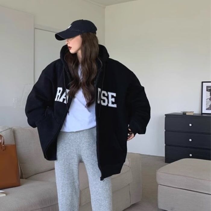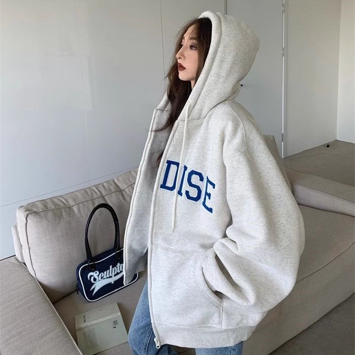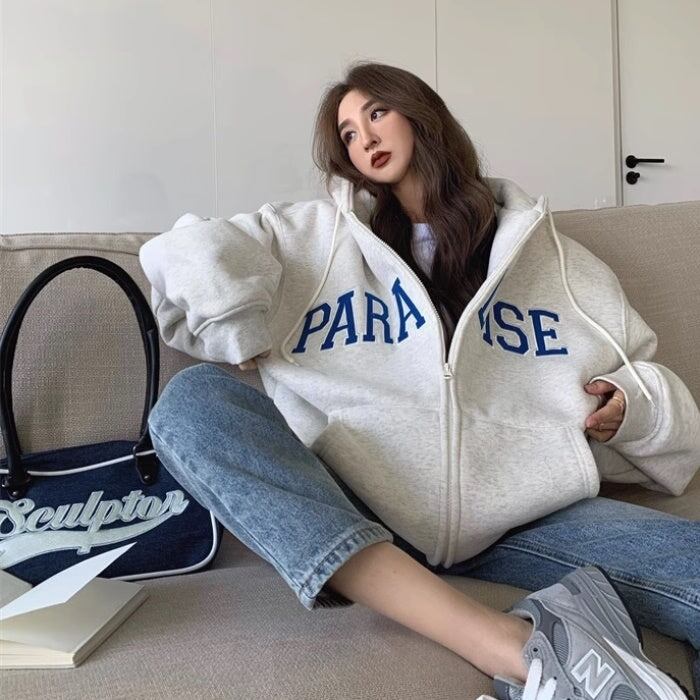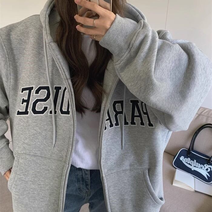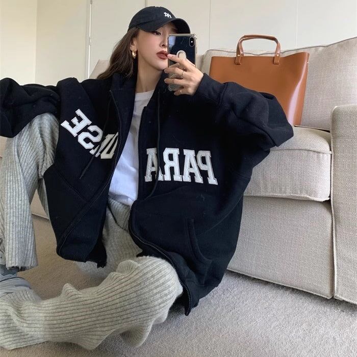 ロゴ ビッグパーカー レディース 韓国 ファッション ジップアップ パーカー 秋冬 ビッグシルエットアウター スウェット フーディー