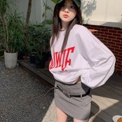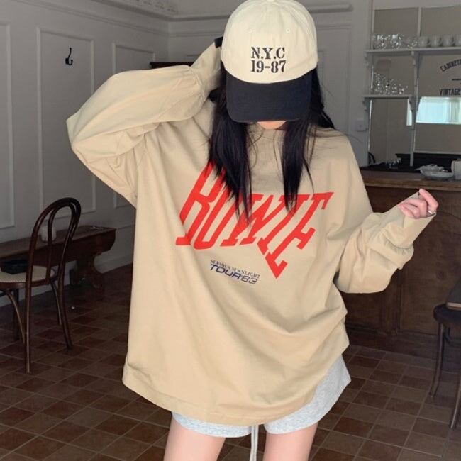 ロゴ ロングTシャツ レディース 韓国 ストリート ロゴプリント 春トップス ビッグシルエット ロンT