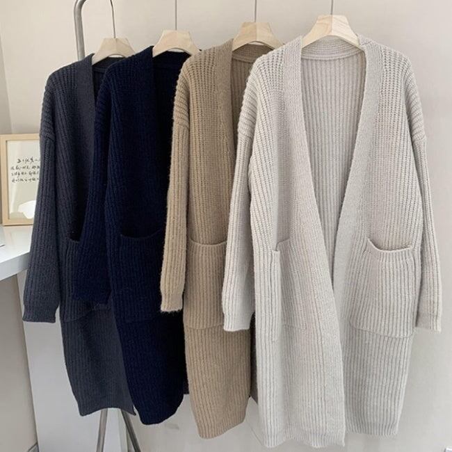 ロングカーディガン レディース 韓国 ファッション ニットジャケット ニットコート トッパー オープン ニュアンスカラー ポケット ロングコート 秋冬 ニット カーディガン