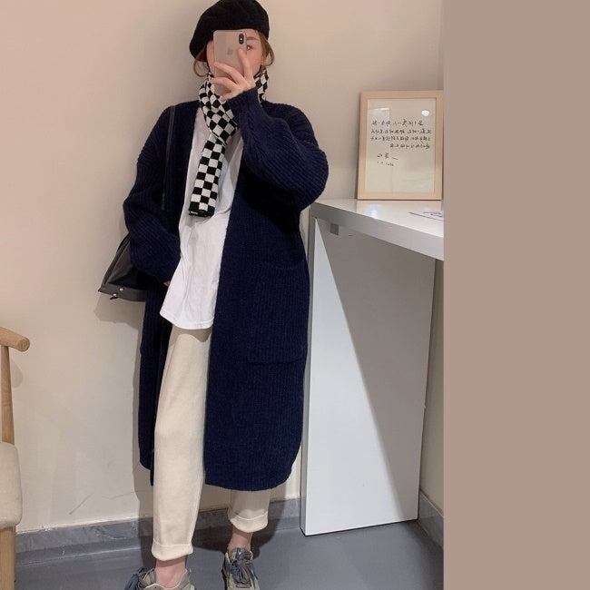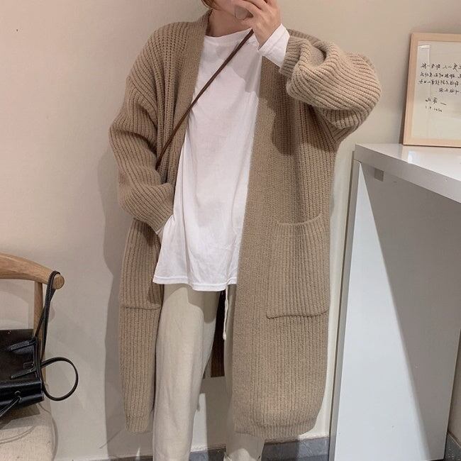 ロング ニットカーディガン レディース 韓国 ファッション ニットコート オーバーサイズ ロングカーディガン