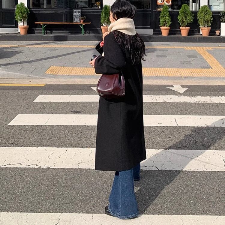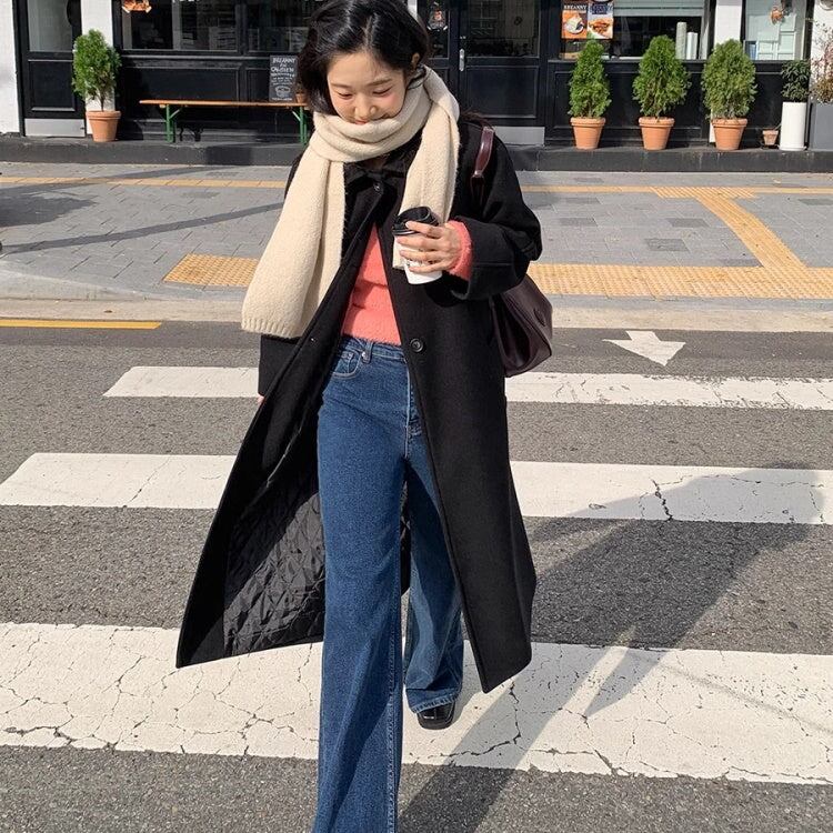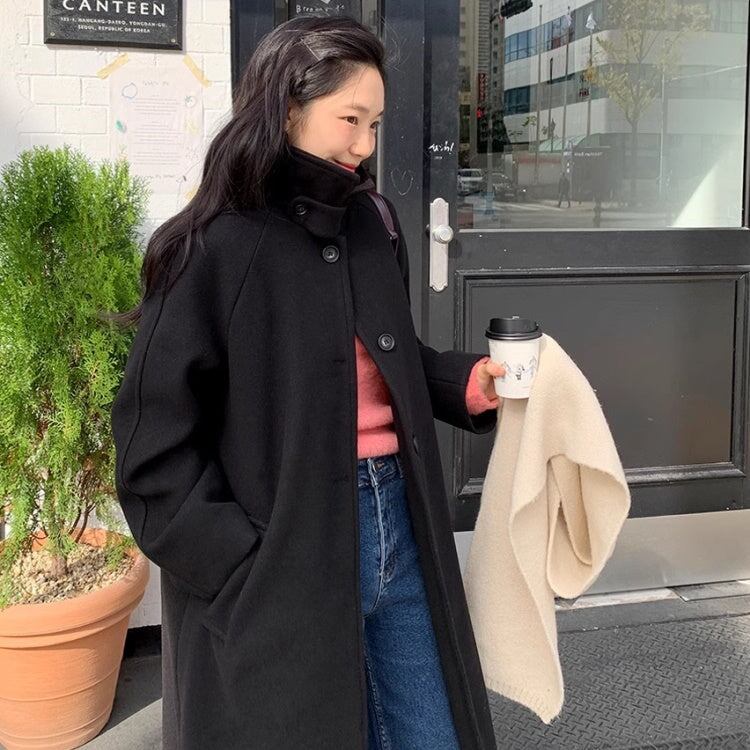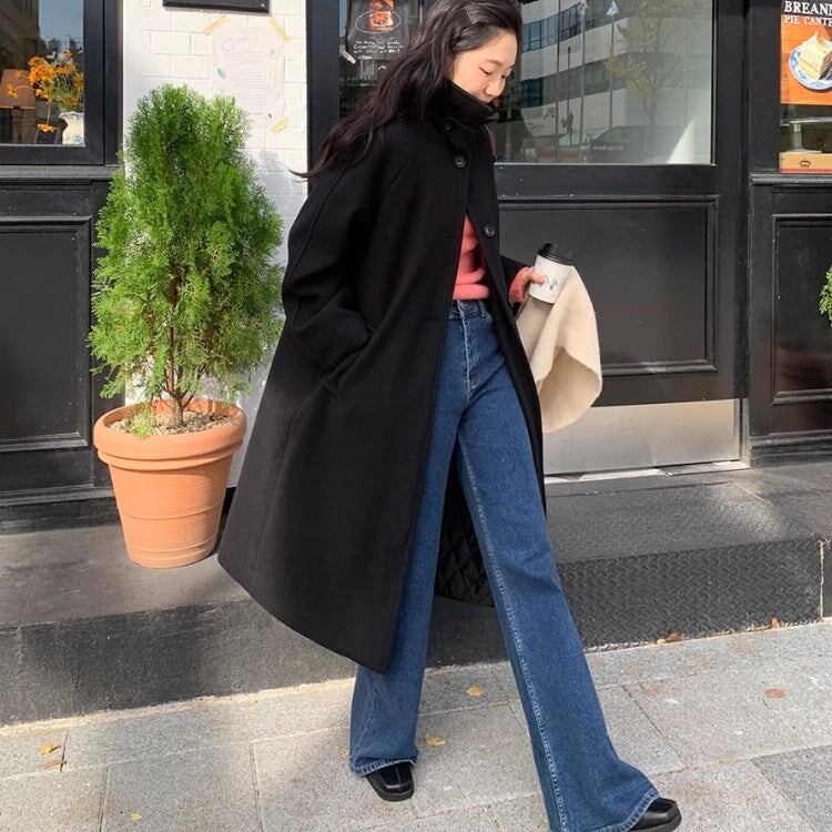 ロングコート レディース 韓国 ファッション 上品 清楚 ウール調 ブラックコート