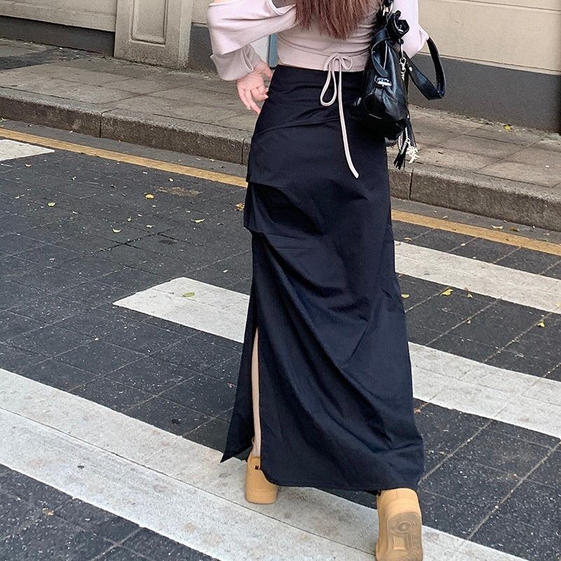 ロングスカート アシメトリー レディース 韓国 ファッション サイドスリット サイドギャザー マキシロング タイトスカート ペンシルスカート