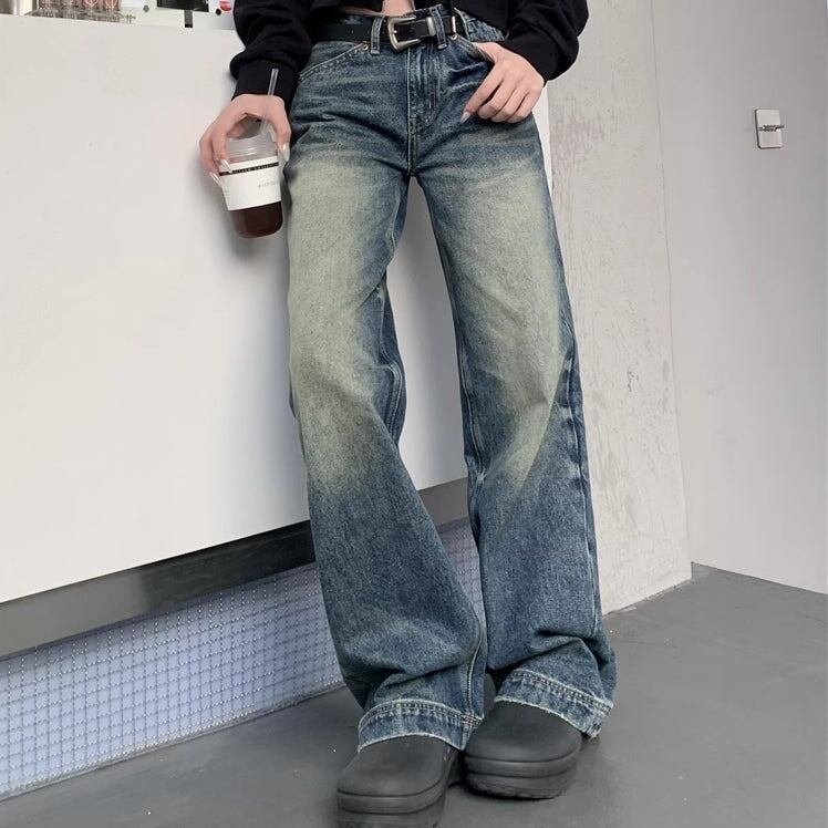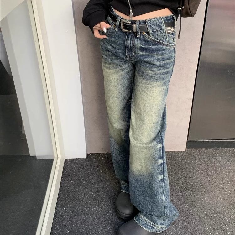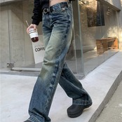 ローライズ デニムパンツ レディース ヴィンテージ ユーズド 加工 ストレート 韓国 ファッション ローウエスト ジーンズ