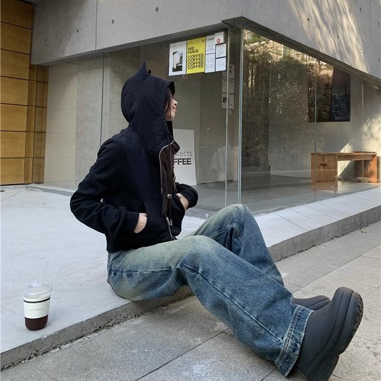 デニムパンツ レディース 韓国 ファッション ダメージ加工 カジュアル パンツ ジーンズ 冬 ローエスト ローレッグ ロングパンツ ダメージ加工 色褪せ加工