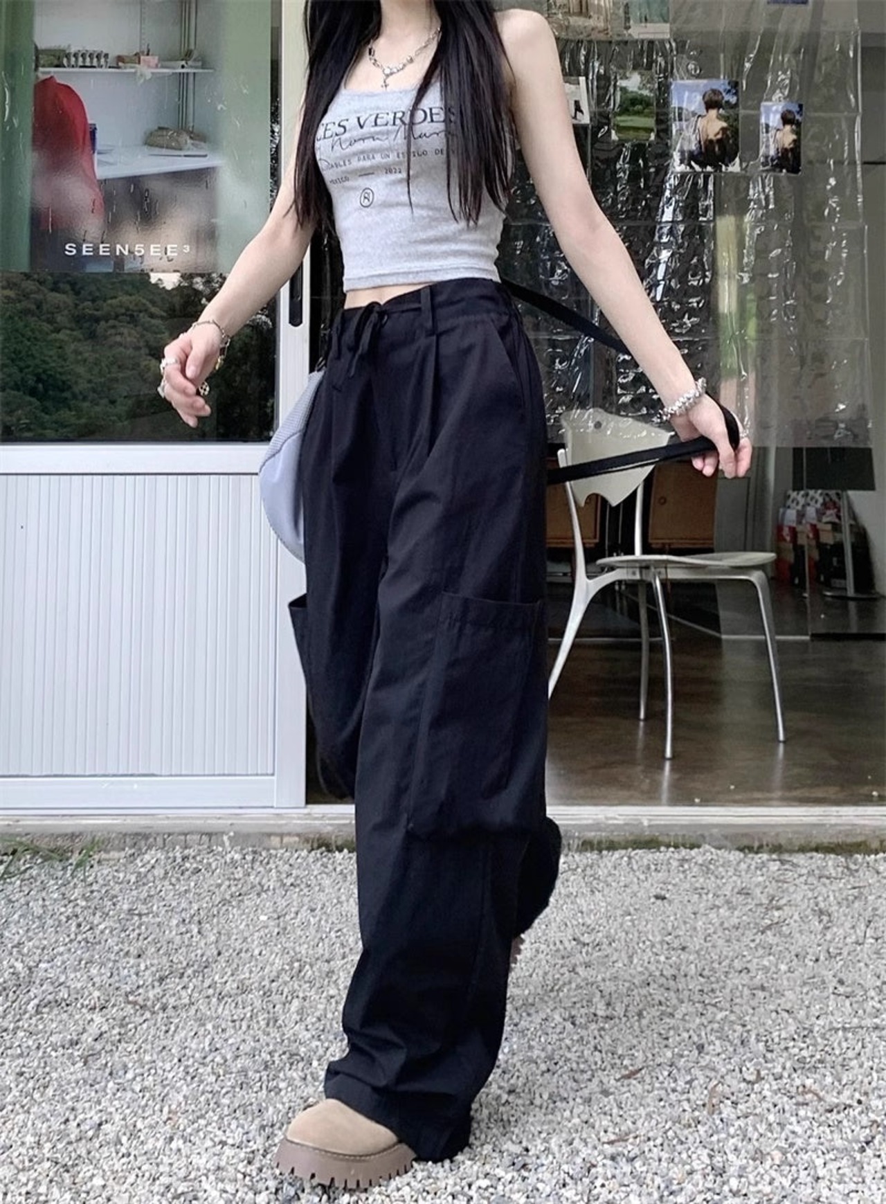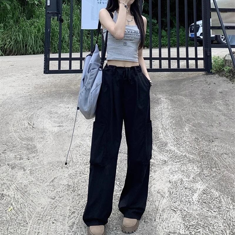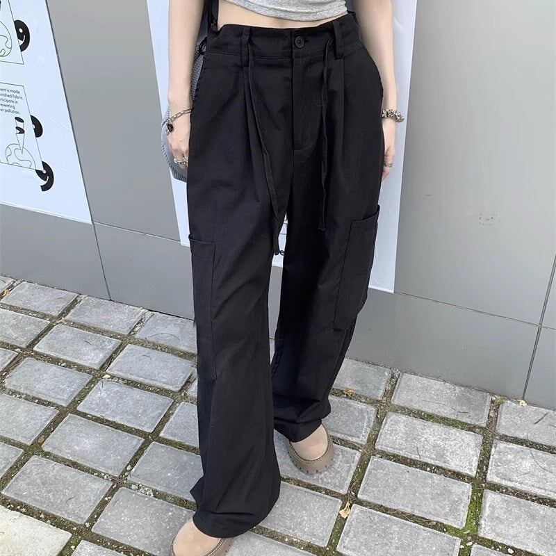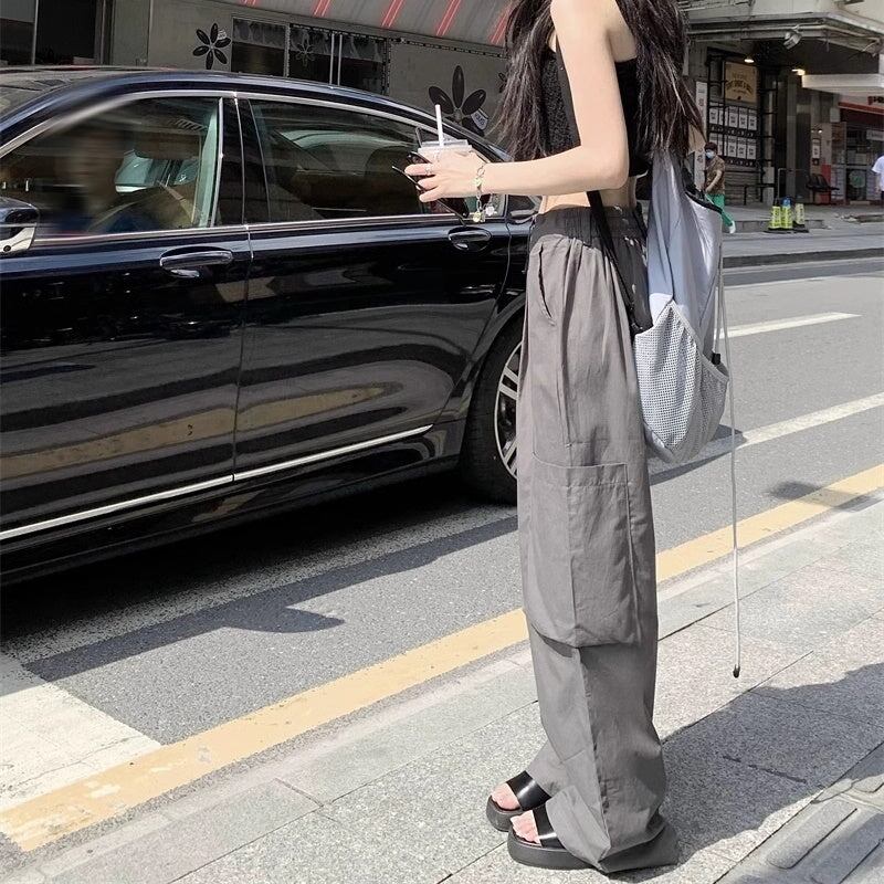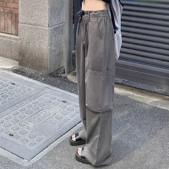 カーゴパンツ レディース 韓国 ファッション カジュアルパンツ ワイドフィット おしゃれ 無地 ロング ウエストゴム