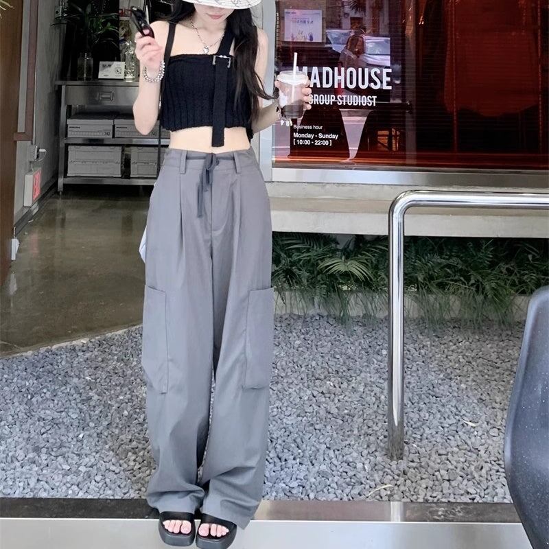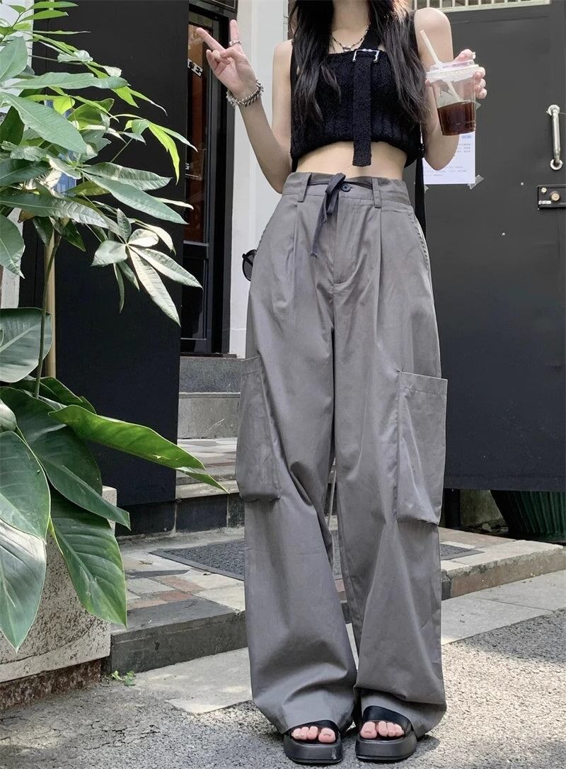 ワイド カーゴパンツ レディース 韓国 ファッション リラックス ワイドフィット ウエスト調整